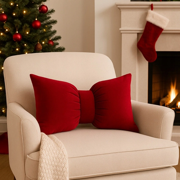 - Aksamitna poduszka dekoracyjna w kształcie czerwonej dużej kokardy o wymiarach 30x50cm. Wykonana z materiału podobnego do aksamitu (100% poliester , 90% bawełna). Kokardę należy samodzielnie "przewiązać", wysyłamy w 2 elementach.