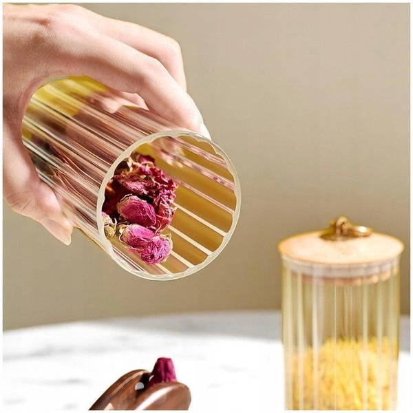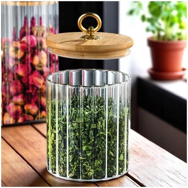- Pojemnik ryflowany z przykrywką bambusowa. Idealny pojemnik na cukier, sól, zioła lub inne produkty. Szkło wysokiej jakości zapewnia trwałość i długotrwałe użytkowanie. Wysokość: 10cm, Wysokość z pokrywką: 10,5cm, Średnica wewnętrzna od góry: 8,5cm