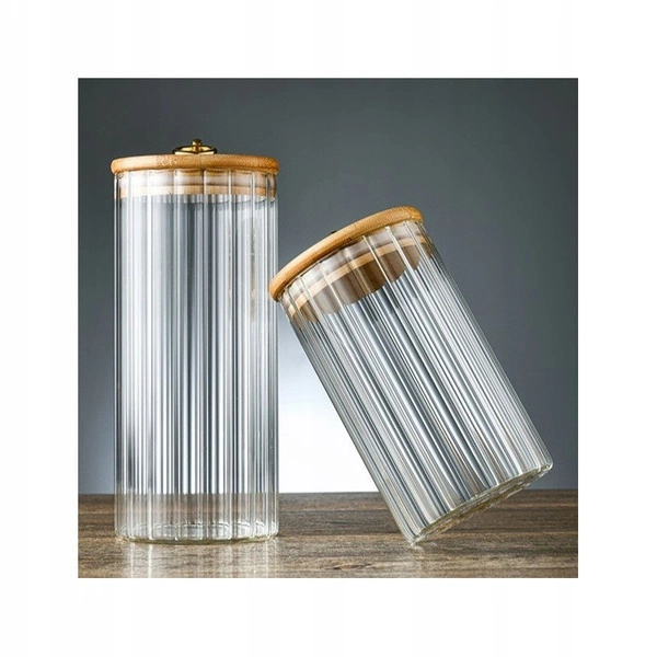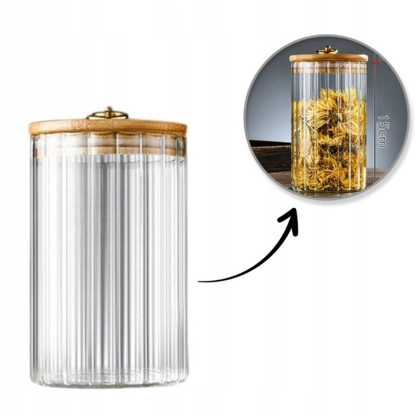 - Pojemnik ryflowany z przykrywką bambusowa. Idealny pojemnik na cukier, sól, zioła lub inne produkty. Szkło wysokiej jakości zapewnia trwałość i długotrwałe użytkowanie. Wysokość: 15 cm, Wysokość z pokrywką: 15,5cm, Średnica wewnętrzna od góry: 8,5cm