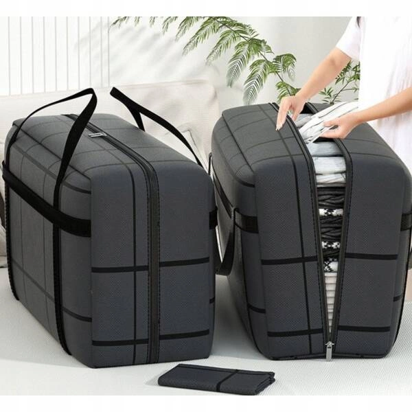 • Torba świetnie sprawdzi się do przechowywania pościeli, ciuchów, ręczników, kocy czy innych produktów, które nie ma gdzie zmieścić.Pokrowiec z łatwością przechowasz w szafie, łóżku, na strychu itp.Wymiary: ok. 75 x36 x33cm. Pojemność: 90l.
