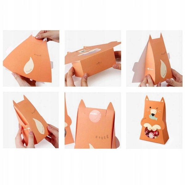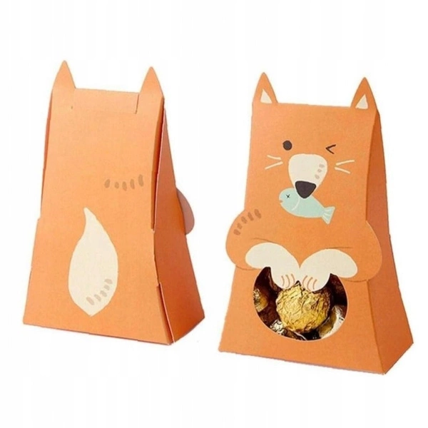 - Pudełko ozdobne prezentowe w kształcie zwierzątka. Wystarczająco dużo miejsca do przechowywania słodyczy, czekoladek i innych drobiazgów. Wykonane ze pięknego papieru. Wysokość : 16,5 cm. Szerokość: 10 cm. Głębokość: 5 cm