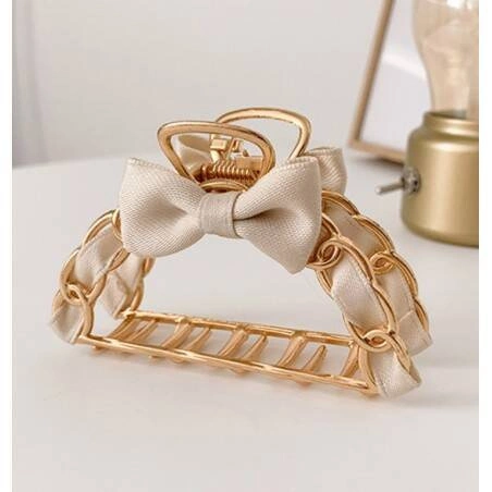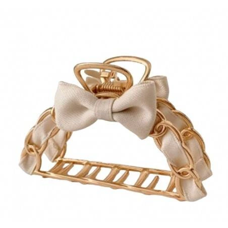 ECARLA spinka do włosów klamra XL Złota z Beżową Kokardą SP261K