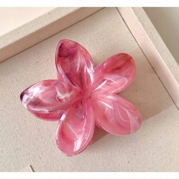 - Ozdobna spinka do włosów w kształcie kwiatu wykonana najwyższej jakości materiałów, z tworzywa sztucznego przypominającego marmur oraz metalu nieszlachetnego, bez niklu i chromu. Wymiary: 7,5 x8 x4cm. Waga: 21g. Unikać kontaktu z wodą.