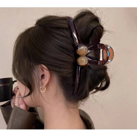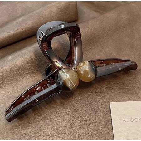ECARLA spinka-klamra do włosów z kulkami 12x5cm Brązowa SP353