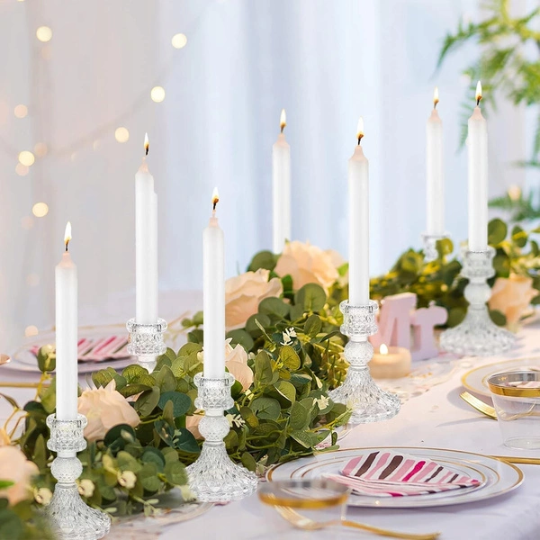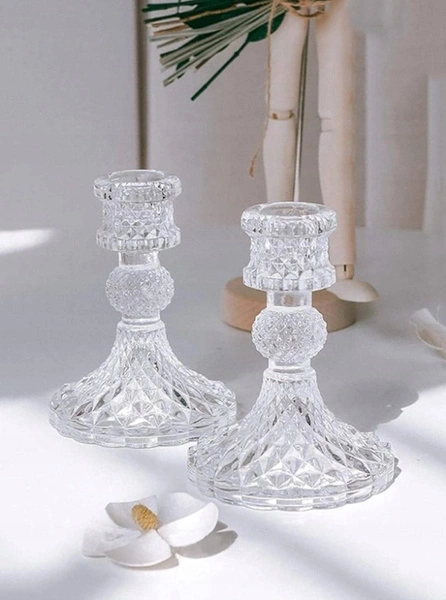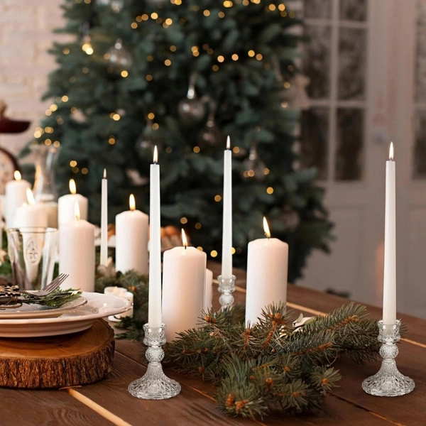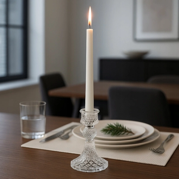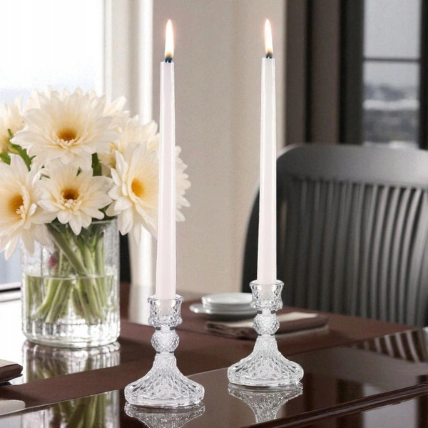 - Elegancki świecznik szklany został zaprojektowany, by stabilnie utrzymywać świece o średnicy do 2,3 cm, idealny do świec stożkowych, filarowych i cylindrycznych. Wymiary: 10,5x 8cm
