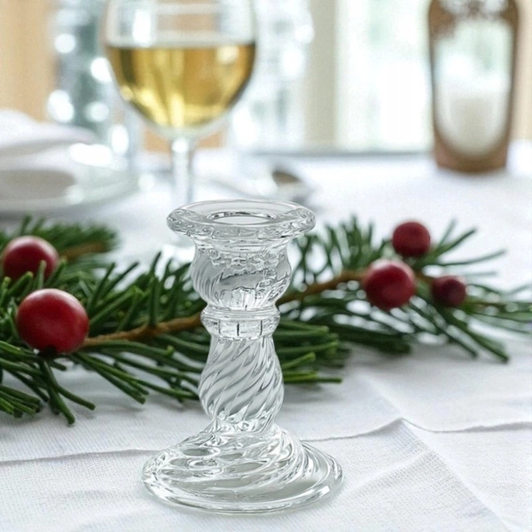 - Elegancki świecznik szklany został zaprojektowany, by stabilnie utrzymywać świece o średnicy do 2,3 cm, idealny do świec stożkowych, filarowych i cylindrycznych. Wymiary: 10,5x 8cm