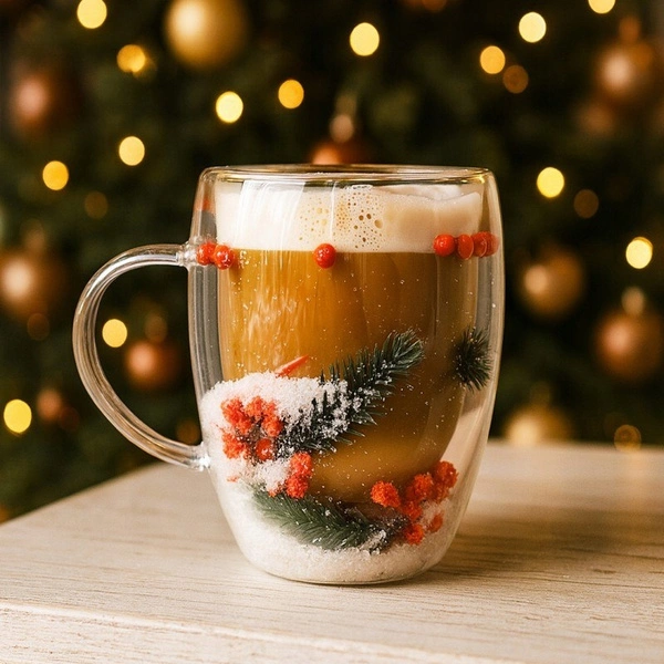 ECARLA szklanka termiczna akcenty świąteczne, śnieg 300ml SZK198