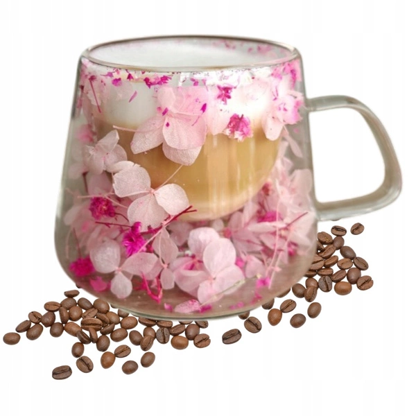 • Elegancka szklanka termiczna z podwójnymi ściankami, ozdobiona motywem hortensji. Utrzymuje temperaturę napojów na dłużej, a jednocześnie zachwyca subtelnym designem. Idealna do kawy, herbaty czy zimnych napojów.