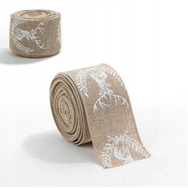 ECARLA taśma świąteczna wstążka 5cmx2m Beżowa taśma z białymi jelonkami KSN128