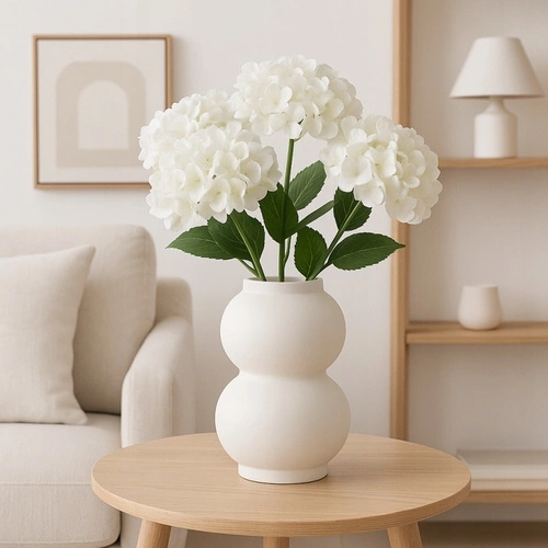 - Wazon ceramiczny, elegancka dekoracja w ponadczasowej bieli. Wykonany z matowej ceramiki, o nowoczesnym, organicznym kształcie. Doskonały do świeżych kwiatów, suszonych roślin lub samodzielna ozdoba wnętrza. Wymiary:20,5 × 13,5 cm, otwór 6 cm