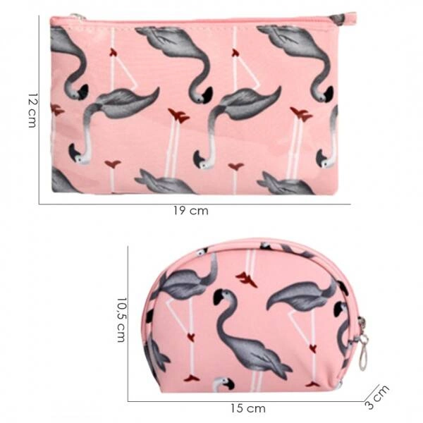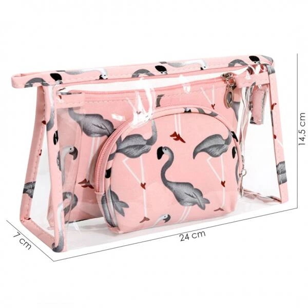 ECARLA zestaw 3 kosmetyczek Różowe w szare flamingi KS65WZ1