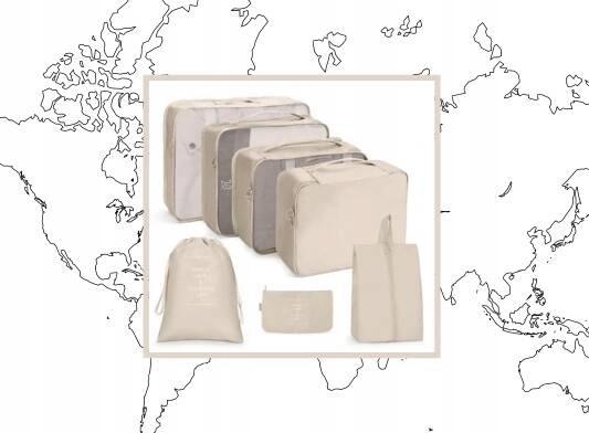 - Zestaw podróżny 7 kosmetyczek saszetek, organizerów z miękkiego, śliskiego materiału oraz siateczki, zamykane są na zamek. TORBY SIATECZKOWE: S:32x 23x 10cm, M: 32x 27x 11cm, L: 42x 32x 10cm TOREBKI: XS: 27x 16cm, S: 30x 21.5cm, M: 35x 20cm, L: 34,5x 27cm