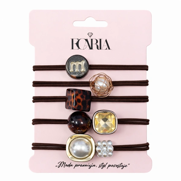 ECARLA zestaw gumek do włosów 5szt brązowe, złote z KAMIENIAMI GUM186