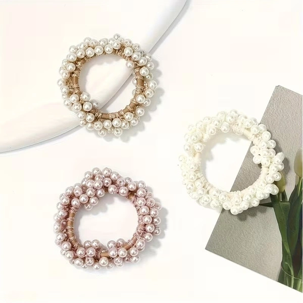 ECARLA zestaw gumek-frotek do włosów 3szt pastelowe PEREŁKI GUM189