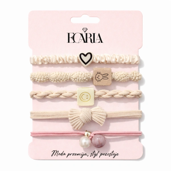 ECARLA zestaw gumek-frotek do włosów 5szt beżowe SMILE SERCE GUM193