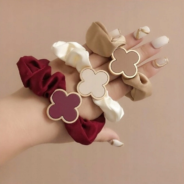 • Zestaw 3 materiałowych gumek do włosów z uroczą koniczynką. Wspaniały dodatek do włosów.