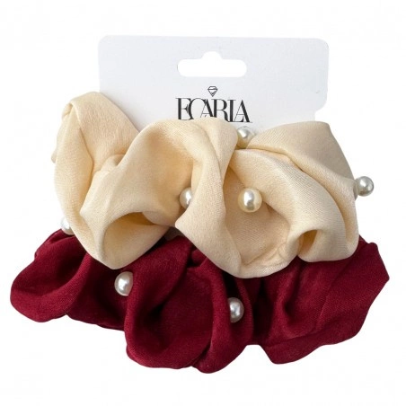 ECARLA zestaw gumek frotek z perełkami 2szt Kremowa i Bordowa GUM197