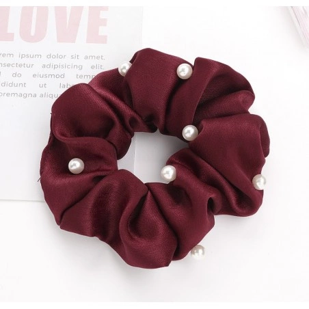 - Zestaw 2 materiałowych gumek do włosów ozdobionych perełkami. Wspaniały dodatek do włosów. Średnica gumki: do 10cm.