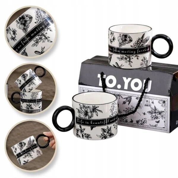 - Zestaw 2 kubków ceramicznych z motywem kwiatowym w kartonowym pudełku. Wymiary kubka: 9x7,3x13,5cm. Wymiary opakowania: 12x21x9,5cm. Waga całkowita: 670g. Produkt przeznaczony do ręcznego mycia.