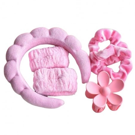 ECARLA zestaw opasek na głowę i nadgarstki + 2 gumki i spinka Róż O539R