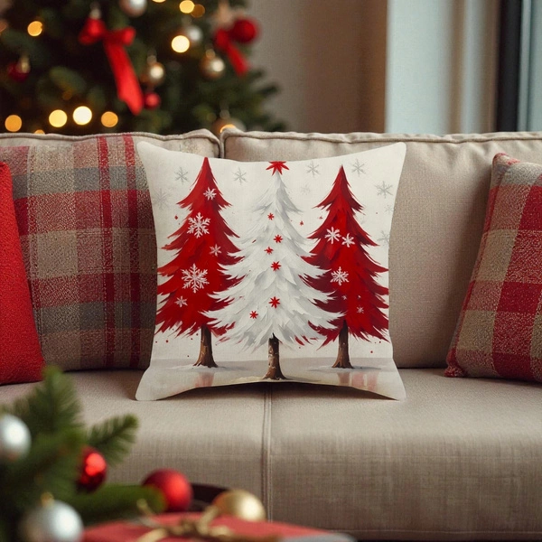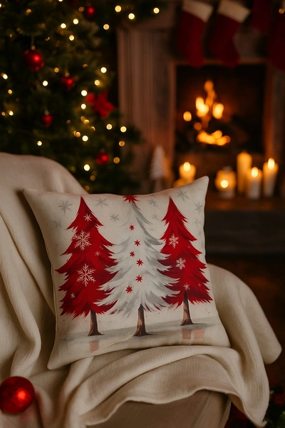 ECARLA Zima Świąteczna poszewka na poduszkę Boho 45x45 TRZY CHOINKI POD243