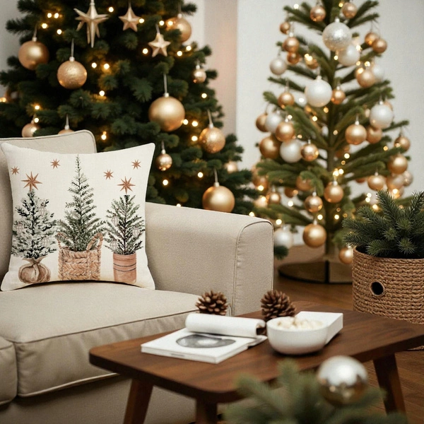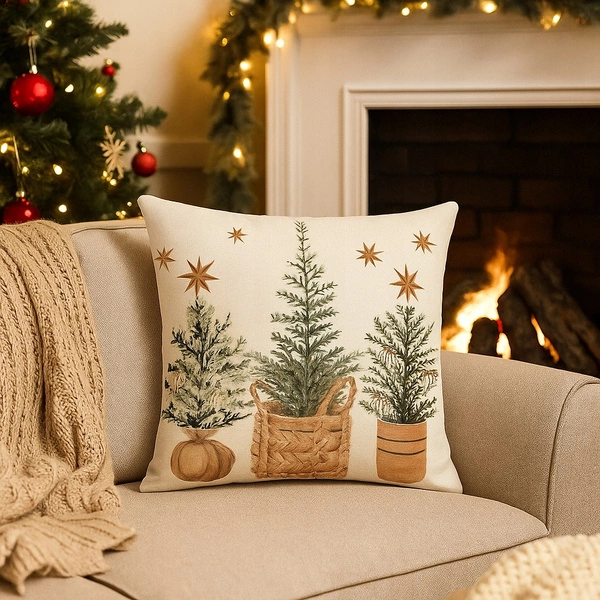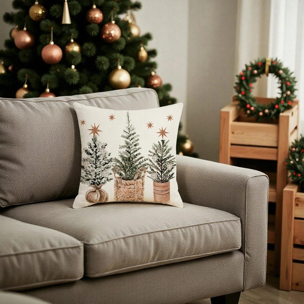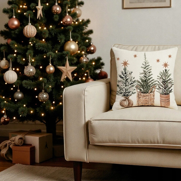 ECARLA Zima Świąteczna poszewka na poduszkę Boho 45x45 TRZY CHOINKI POD249