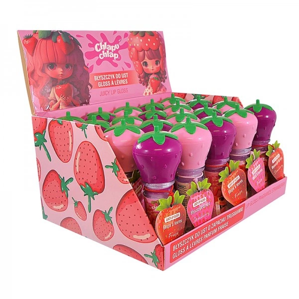 - Błyszczyk do ust o zapachu truskawkowym. Dostępny w dwóch kolorach: jasny róż i amarant.