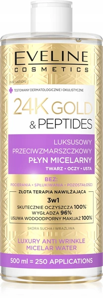 EVELINE 24K Gold & Peptides przeciwzmarszczkowy płyn micelarny 3w1 500ml
