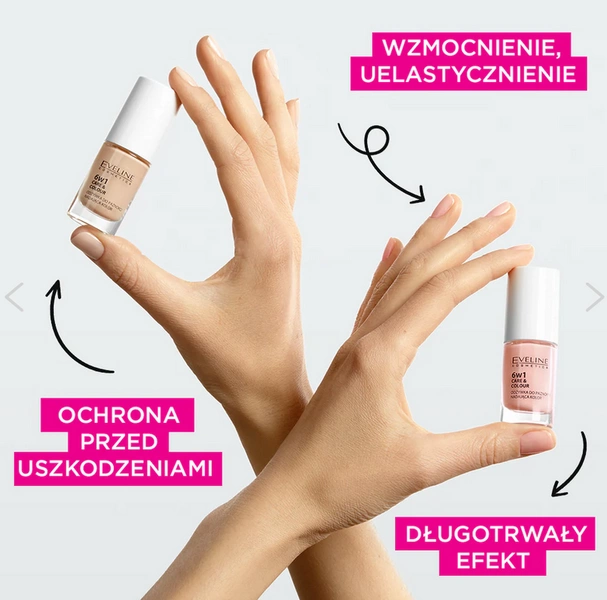 - Odżywka do paznokci 6w1 wnika w strukturę paznokcia, dzięki czemu zawarte w niej krzemionki, wapń i olejki dogłębnie odżywiają, zapewniając skuteczną pielęgnację. Lakier chroni przed uszkodzeniami mechanicznymi, odpryskiwaniem i ścieraniem. Szybko schnie