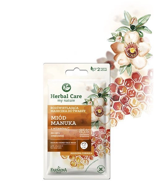Farmona Herbal Care rozświetlająca maseczka do twarzy Miód Manuka dedykowana dla skóry suchej jak i zmęczonej. Bardzo szybko przywraca skórze blask oraz piękny, zdrowy wygląd.
