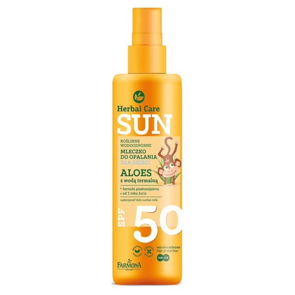 Herbal Care Sun roślinne mleczko do opalania SPF50 wodoodporne bardzo delikatne dla skóry dzieci. Koi i nawilża, dodatkowo łagodzi wszelkie podrażnienia skórne jak i oparzenia słoneczne.