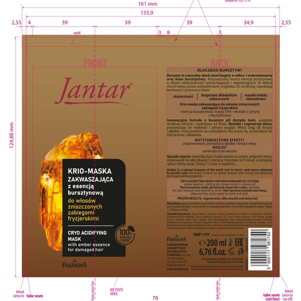 Farmona Jantar, Krio-maska zakwaszająca z esencją bursztynową, 200 ml - do włosów zniszczonych po zabiegach fryzjerskich.