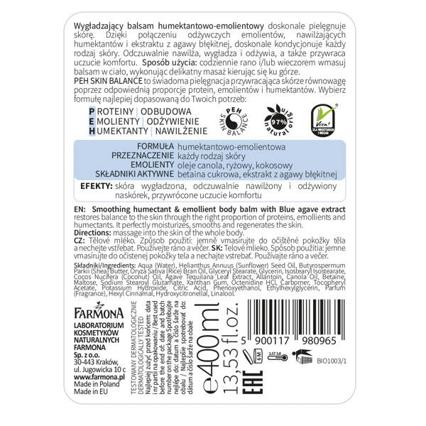 FARMONA my Bio humektantowo emolientowy balsam do ciała wygładzający Agawa błękitna 400ml