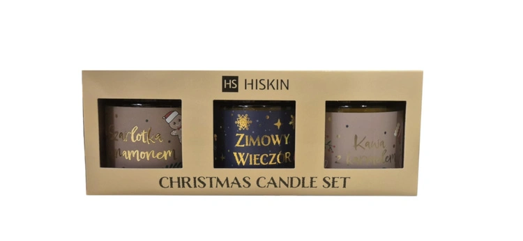 HISKIN zestaw świec sojowych Zapach Świąt + Pierwsza Gwiazdka + Magiczny Nastrój 3x100ml