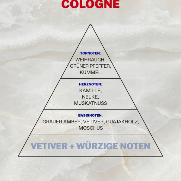 - Woda kolońska to zapach, który łączy ciepło przypraw z dymną, drzewną wetywerią. Pierwsze nuty otwierają zmysły świeżym akcentem cytrusów i przypraw, które stopniowo przechodzą w serce zapachu - intensywną wetywerię, paczulę i drzewo cedrowe.