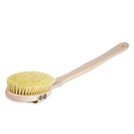 DLA KOGO Produkt przeznaczony jest do każdego rodzaju skóry. SPOSÓB UŻYCIA Stosować do kąpieli na mokro lub na sucho oraz do masażu ciała. Po kąpieli i masażu na mokro dokładnie spłucz szczoteczkę pod czystą wodą, strząśnij ją z wody i rozwieś włosiem do dołu lub odłóż je na suchy ręcznik. Nie należy suszyć go na ciepłym kaloryferze lub suszarce. Po masażu na sucho potrząśnij szczoteczką w dłoń, aby usunąć naskórek. W razie potrzeby umyj w wodzie z mydłem, spłucz czystą wodą i wysusz naturalnie z opuszczonym włosiem. SKŁAD (INCI) Lite drewno bukowe FSC, naturalne włókno kaktusa agawy
