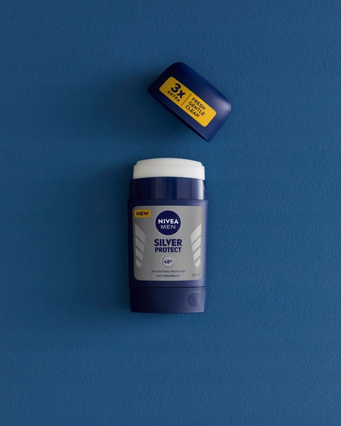 Antyperspirant w sztyfcie NIVEA MEN Silver Protect to produkt dla mężczyzn, którego innowacyjna formuła antybakteryjna z jonami srebra efektywnie przeciwdziała powstawaniu nieprzyjemnego zapachu. Jego działanie zapewnia niezawodną, 48-godzinną ochronę przed poceniem.