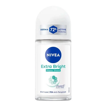 Antyperspirant NIVEA Extra Bright Happy Shave zapewnia niezawodną ochronę dzięki witaminie C i aloesowi.