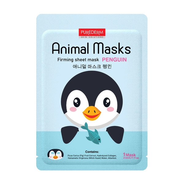 PUREDERM Animal Mask maska do twarzy w płacie łagodząco wygładzająca Pingwin 21ml