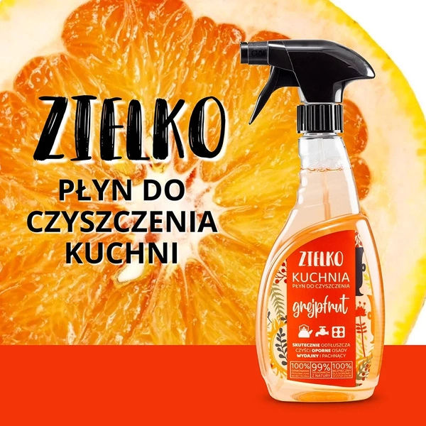- Uniwersalny, ekologiczny płyn do kuchni. Skutecznie czyści piekarniki, kuchenki mikrofalowe, płyty grzewcze i inne powierzchnie kuchenne. Wypełnia kuchnię przyjemnym, naturalnym zapachem grejpfruta. Nie pozostawia smug i zacieków na czyszczonych miejscach