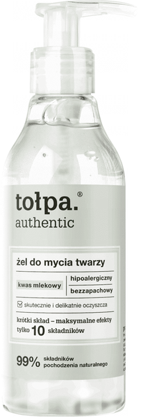 Tołpa Authentic żel do mycia twarzy doskonale oczyszcza oraz pielęgnuje dzięki zawartemu w sobie kwasu mlekowego. Bardzo dokładnie usuwa zanieczyszczenia oraz makijaż. Dodatkowo łagodzi wszelkie podrażnienia jak i zaczerwienienia.