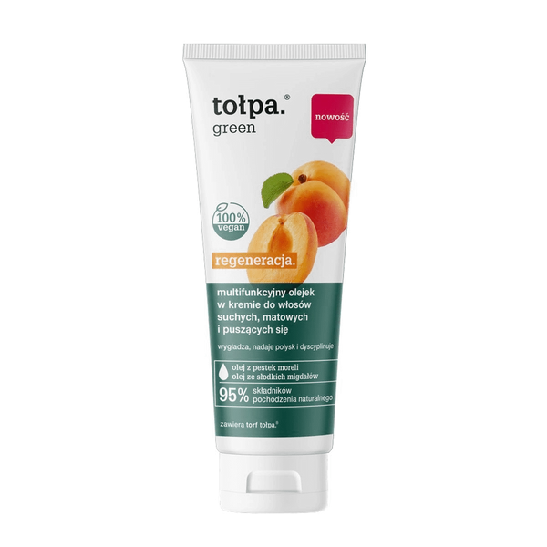 Tołpa Green Olejek w kremie do włosów dedykowany dla osób z włosami matowymi, suchymi oraz z puszącymi się. Doskonale odżywia włosy, regeneruje i odpowiednio je nawilża.