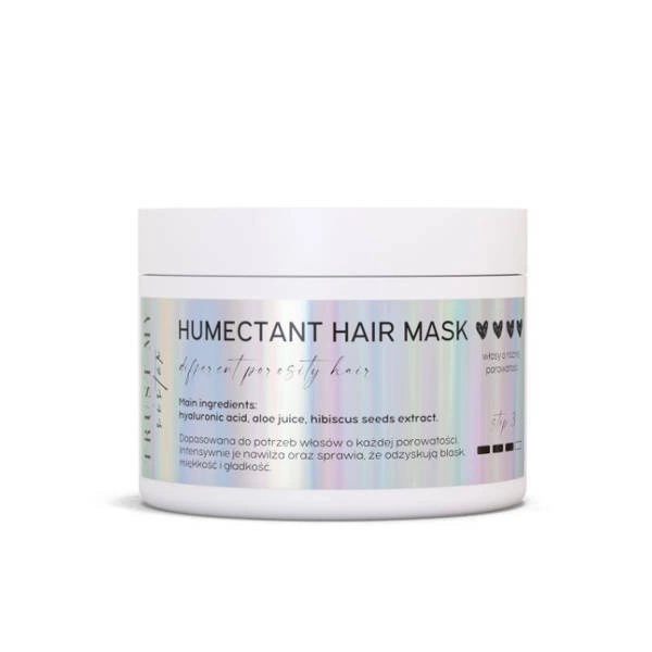 Trust my sister Maska humektantowa uniwersalna dedykowana dla każdej porowatości włosa. Wspomaga utrzymanie odpowiedniego nawilżenia wewnątrz włosa. Dzięki właściwościom maski włosy odzyskują naturalny blask, widoczną gładkość i super miękkość w dotyku.