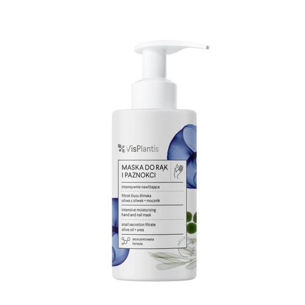 - Intensywnie nawilżająca maska do rąk i paznokci z filtratem śluzu ślimaka, oliwą z oliwek, mocznikiem.