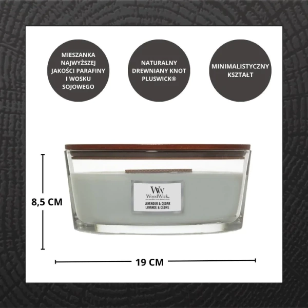 WOODWICK Core Hearthwick świeca w słoiku elipsa LAVENDER & CEDAR 453g