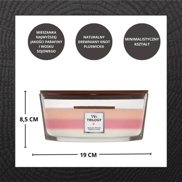 WOODWICK Hearthwick Trilogy świeca w słoiku elipsa BLOOMING ORCHARD 453g