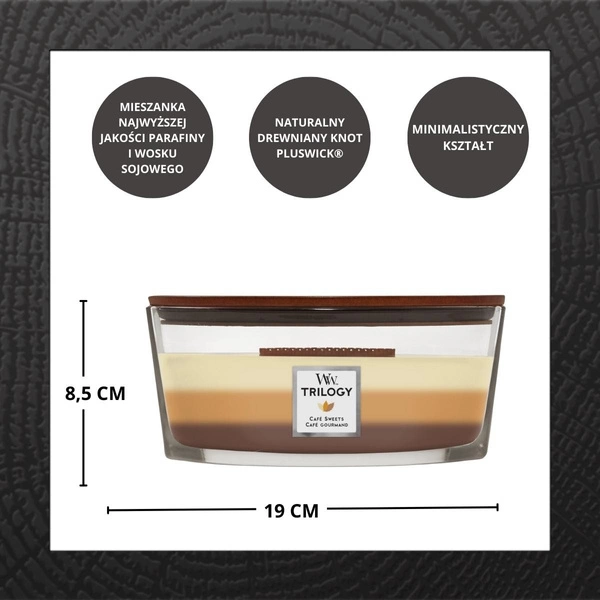 WOODWICK Hearthwick Trilogy świeca w słoiku elipsa CAFÉ SWEETS 453g