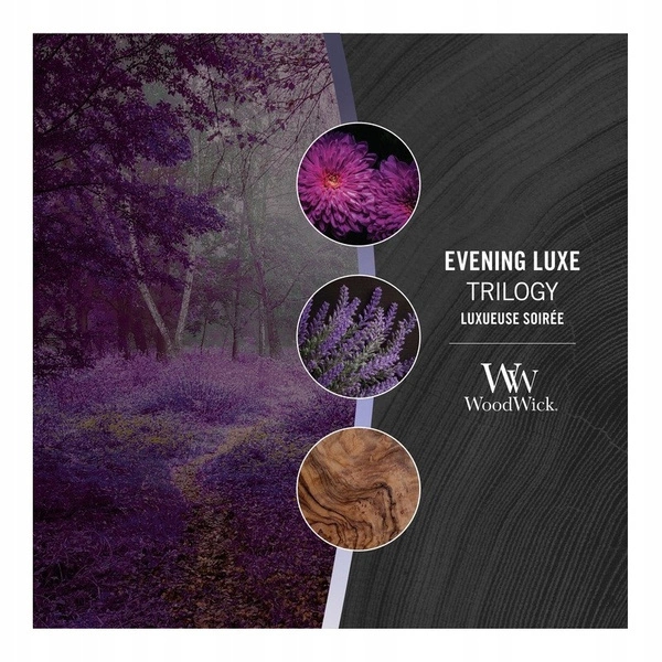 • Evening Luxe to nuty lawendy przeplatające się z zapachem drzewka Hinoki i drzewa cedrowego. Evening Luxe to połączenie trzech zapachów świec: Hinoki Dahlia, Lavender Spa i White Teak.