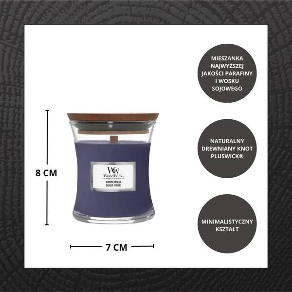 - Świeca sojowa z drewnianym knotem skwierczącym jak drewno w kominku z technologią PlusWick.