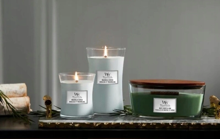 Świeca średnia WoodWick wprowadzi do Twojego domu kojący dźwięk iskrzących płomieni i zachwycający zapach. Świece Woodwick posiadają specjalne drewniane knoty PLUSWICK®, które wydają dźwięk palonego w kominku drewna i zapewniają prawidłowe wypalanie świecy. Wyjątkowy kształt świec i szeroki wybór zapachów pozwolą Ci stworzyć dekorację wnętrza na najwyższym poziomie.